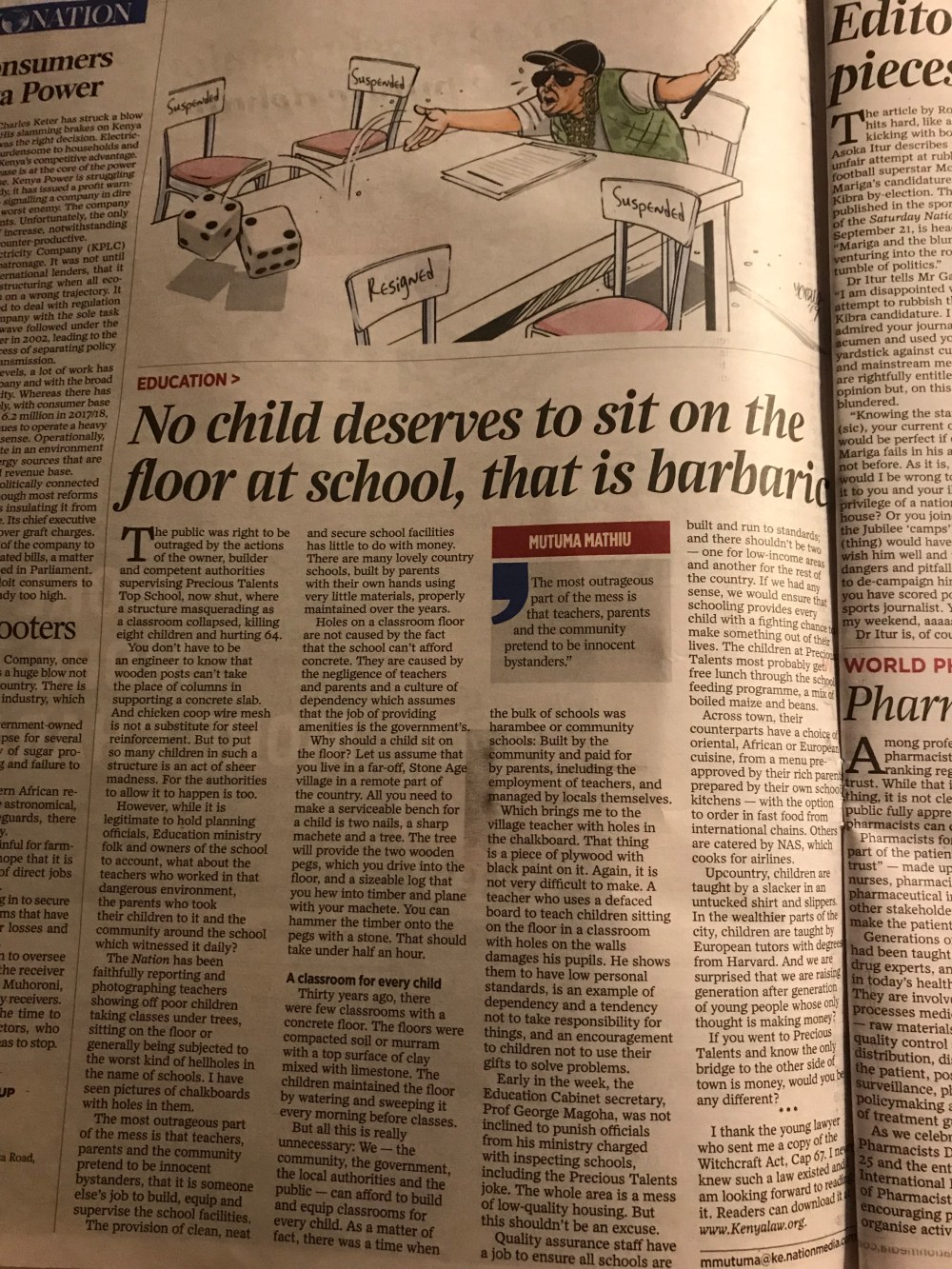 Recently, a school for poor in Nairobi has scrolled down. Eight children giving exams that day in the classroom died.