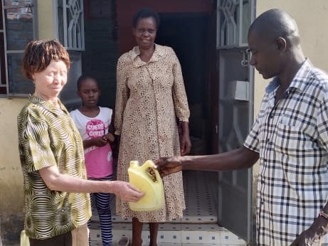 The people with albinism who were trained will continue the production. Each of the 55 households with PwAs in Webuye which are connected to the community from today onwards will be getting 3 litres of liquid soap monthly made in our MMH house.