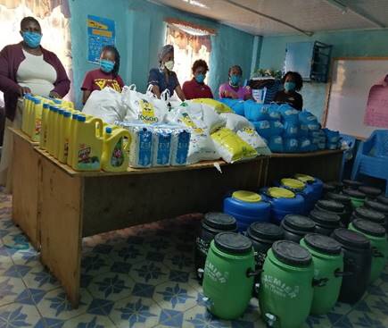 During this activity, the community was sensitized on covid-19 pandemic and demonstrations on handwashing was done. Flyers with information on Covid-19 were distributed, masks to the families including the water containers that was given to 30 households. “36 Families were supported with food stuff that included Maize Flour, Rice, Beans, Green grams, Sugar, cooking oil and wheat flour. Each of the families also received multipurpose soap, Hand wash Soap, jik and a bottle of petroleum jelly.”