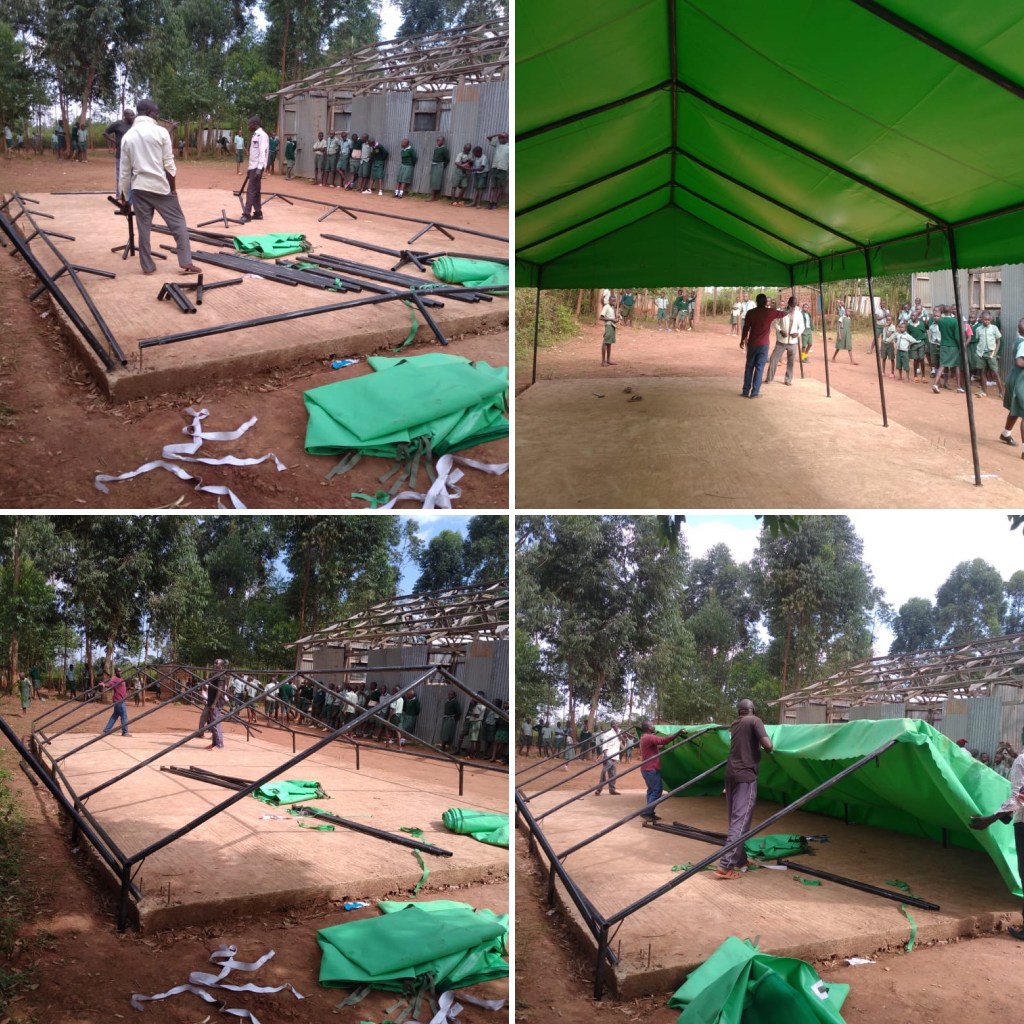 “What a great idea and salvation done to this needy pupils in this school! At least we can now teach in a classroom even though not permanent, but we are now covered with the pupils and out of danger from the morning chills and rains. At least they do not have to sit under a tree in the mud trying to protect themselves against rain. What a beautiful tent! And that spacious”, he commented.