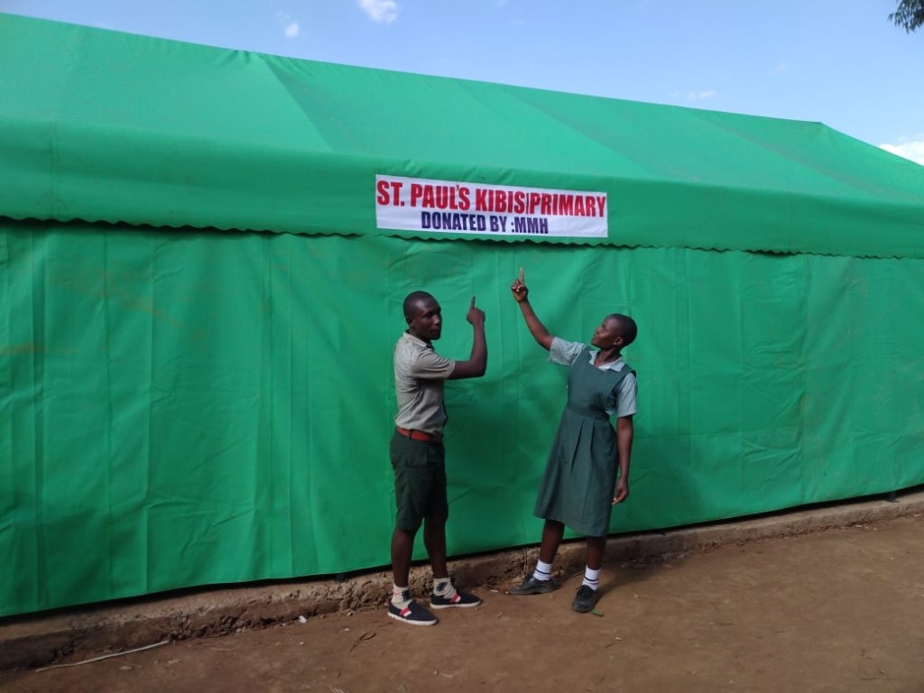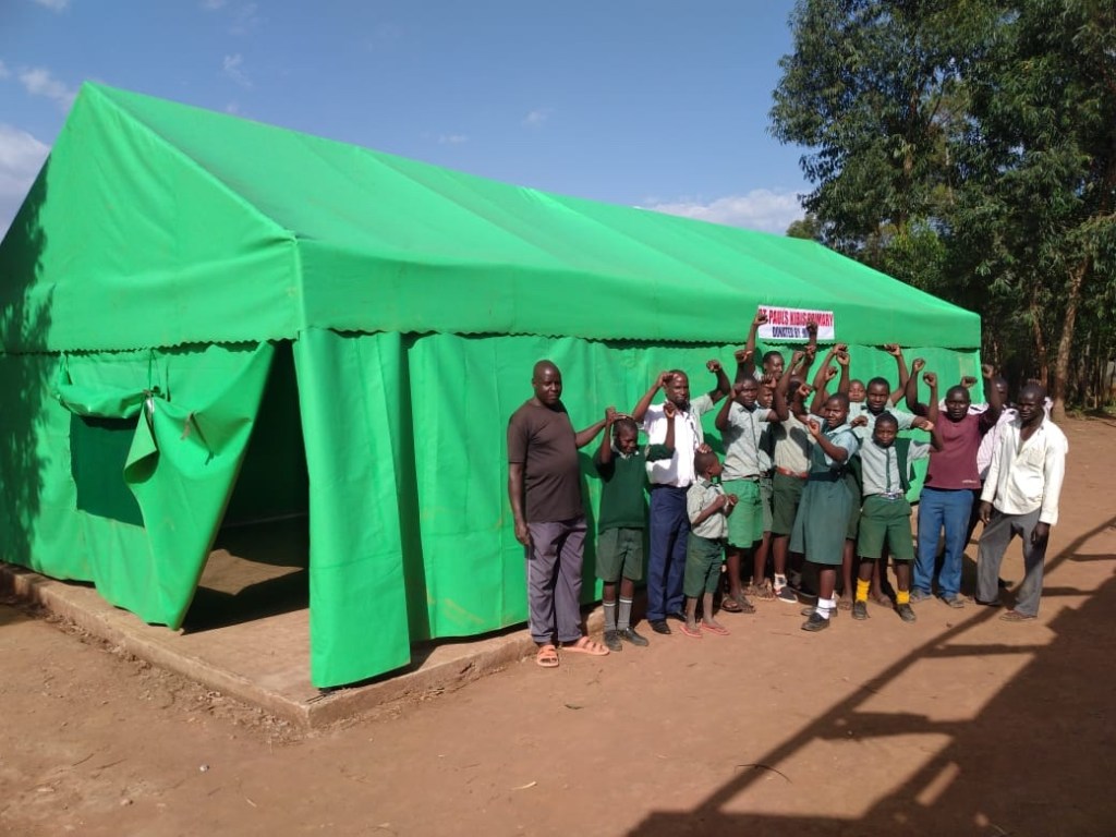 Waaau! The school tent is ready. The pupils are happy and even for the school headteacher it is a big step forward.
