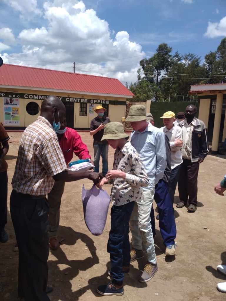 “We gathered in the outer space and we had a lot of participants today. And there was a lot on our agenda: we trained on safety, repeated the measurements that can be taken against Covid – 19 and informed our people with albinism and parents about protective skin and eye care. People liked a lot the new MMH flyers on these topics. Later on we distributed the women health packages which we received from our friends from the WaWA NGO in Homabay. As you have supported the women there to produce and prepare these women kits many were already waiting to get them. They contained washable menstruation pads and two panties per women. This was also highly appreciated. Many women have no access to pads and the economic situation does not allow to buy any panty to most of them. At the moment the situation is even more serious everywhere than before. Many suffer from hunger.