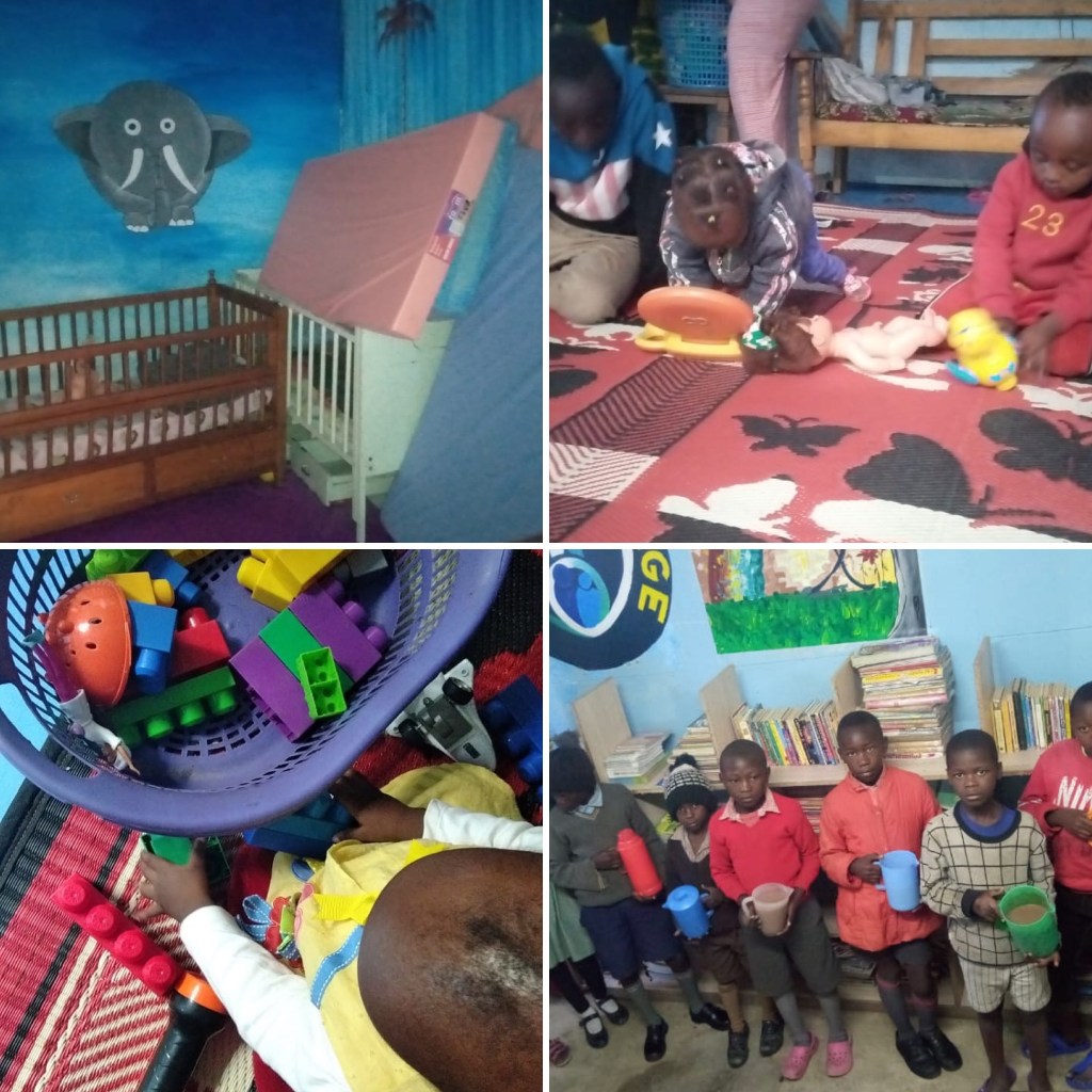 With KEnDIA, my not profit oriented online shop, I support a small center for children in Mukuru slums in Nairobi. The children center and library is more of a larger tin hut, but there is protection (at the moment the temperatures in Nairobi are 10-15 degrees in the morning, rainy season) and there is a small meal for everyone. The children living in the slums come here to read, play and learn.