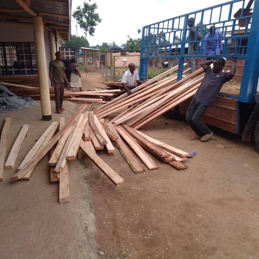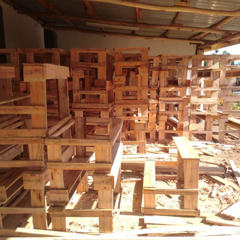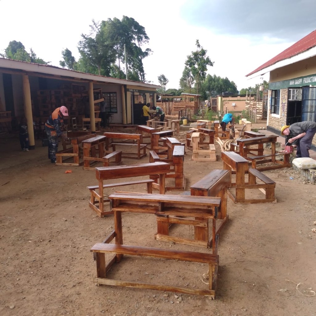 Some of our people at the MMH center are experts in building desks. Now they have started with a lot of energy to build the first desks. The MmH school with the new classrooms will re-open in October. And ideally, most of the new classrooms will then have also the desks and chairs to welcome the children.