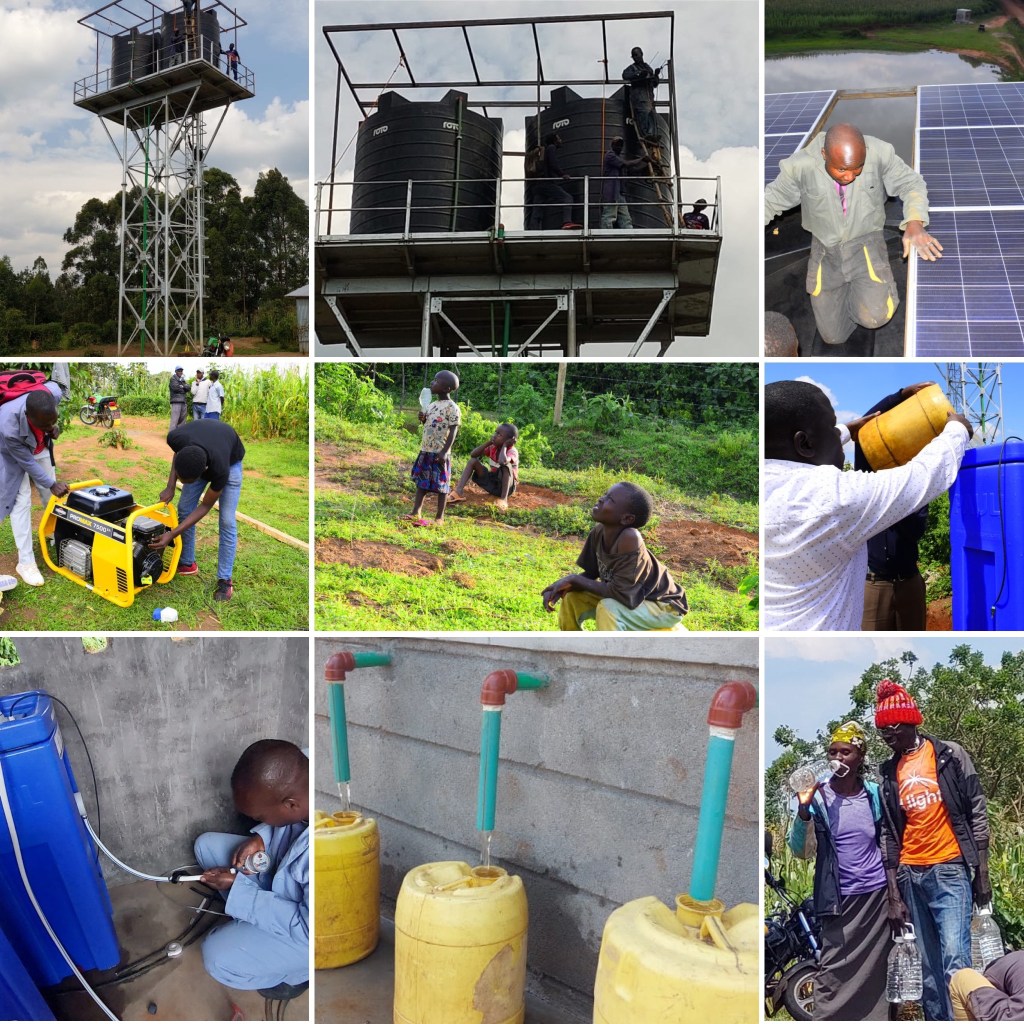 The main water source is the natural kibisi water dam in Bungoma county. Besides the water house close to the tower where people can fetch water, also some very long water tubes – directed to the houses and villages around- were installed, thus allowing the community members to get fresh water much closer to their houses.