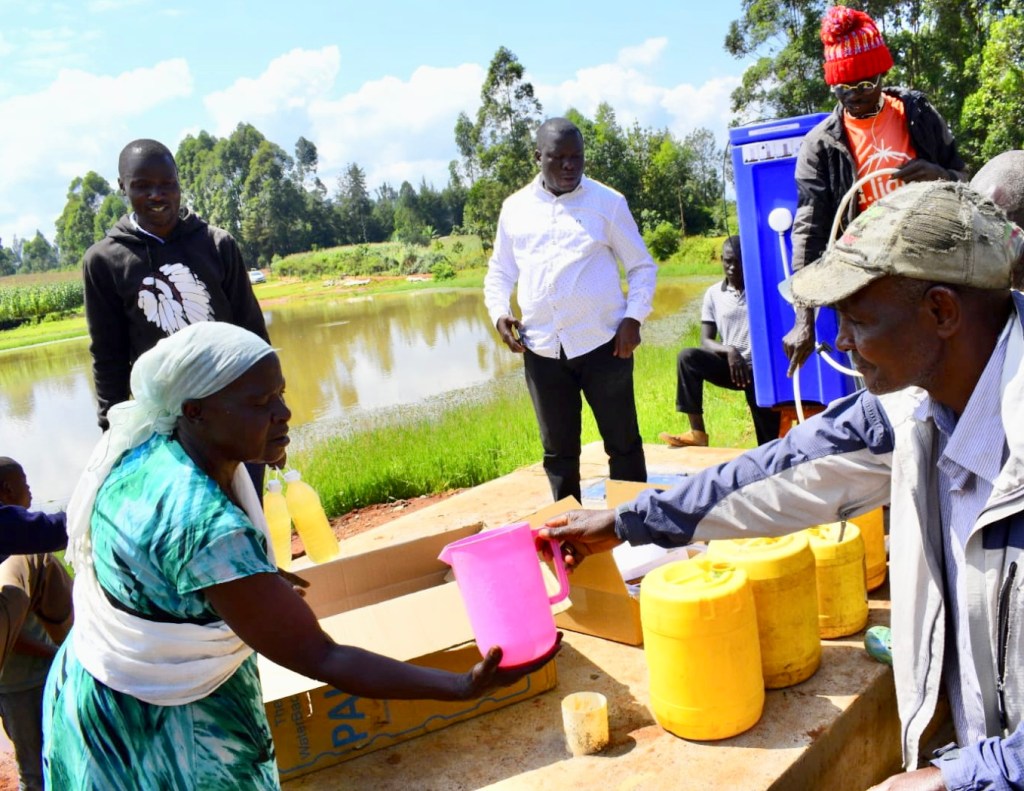 “This lady was hesitant about ever drinking water from the Kibisi dam because it was dirty and contaminated. She said it smelled bad also. So when she came to the dam one of her neighbours gave her some purified water to drink teasingly saying it was from Kibisi dam. At first she refused because the water was very clean…she thought it was from another source. She said she had never seen clean water from Kibisi dam for over 50 years she had lived in Kibisi!”, shared our local NGO partner Cleophas from Core Health Wealth with us.