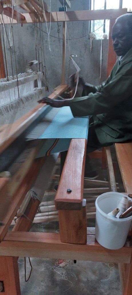 “It takes about 3 months to be proficient…But so far, the trainees have taken 3 weeks and have more time to practice. We have enrolled 30 people, 6 young men and 24 women. They come in shifts…to accommodate them on the looms,” explains our local NGO partner Cleophas from Core Health & Wealth.