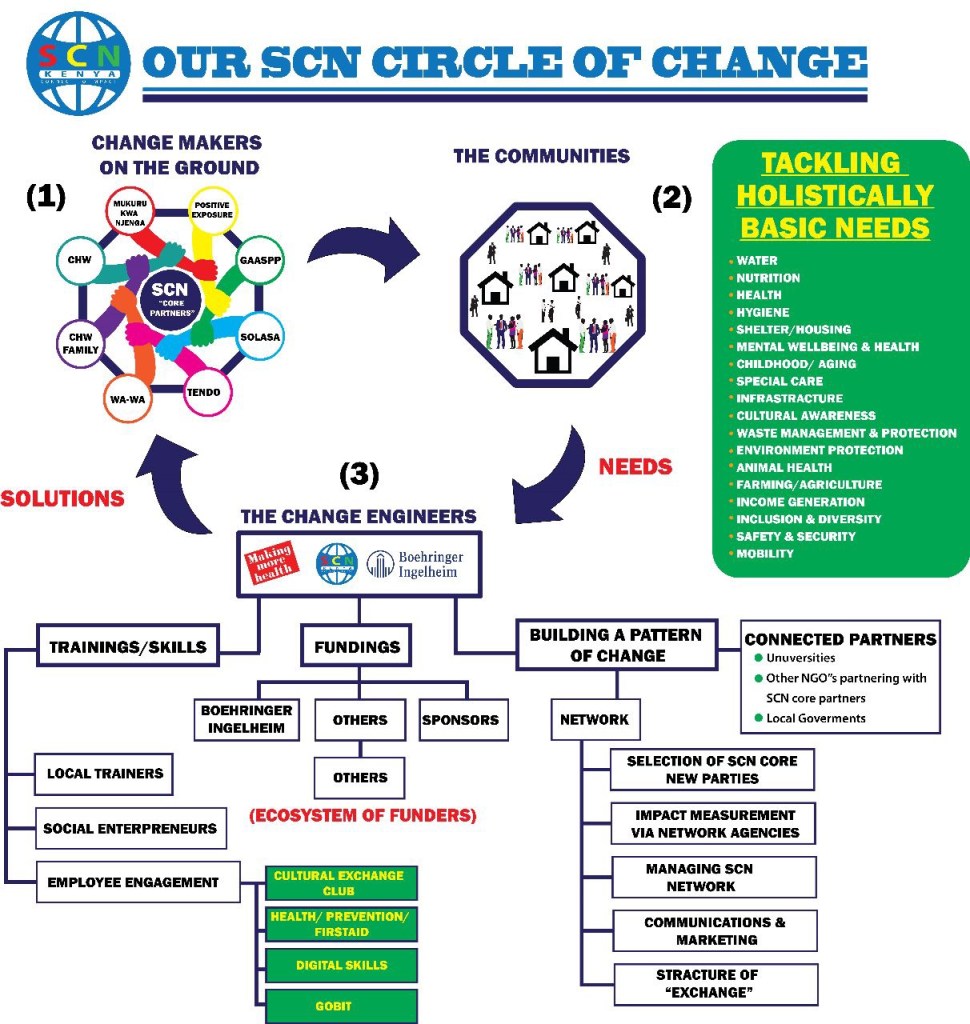 That’s why we have set up the system changer network Kenya with eight Core NGO partners and do also network analysis and system index measurements while covering together many basic needs in parallel. We believe that we need more than high “isolated” numbers, more than traditional doing. We believe in building ecosystems of change on various levels.