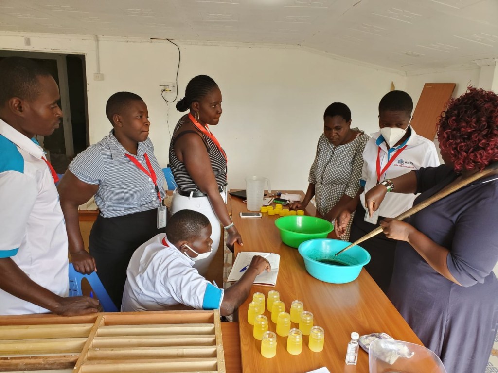 “Today we have an opportunity to learn more about jelly and solid soap making at SOLASA, one of our eight system changer network (SCN) partners. Our community ambassadors will then go back and disseminate this information to their perspective communities,” shared Cavin, leading the NGO Wa-Wa at Lake Victoria.