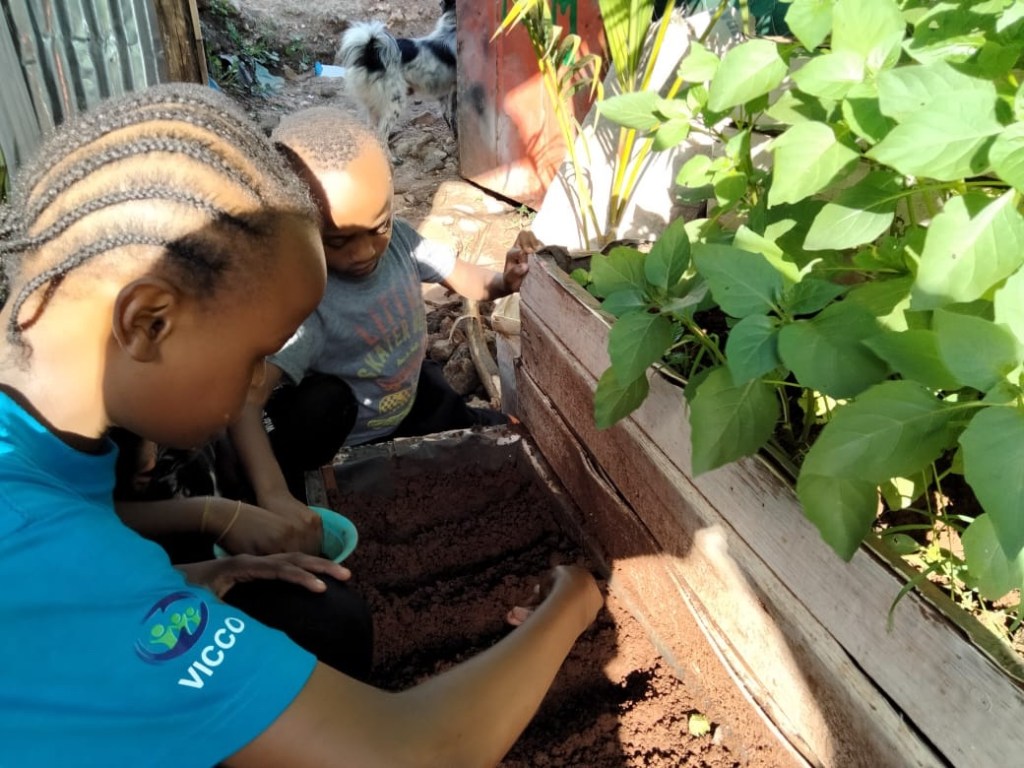 “We engage children in planting as they prepare to go back to school.. we managed to plant eggplant carrots, spinach, cowpeas and onions . Children and teens learn about the importance of protecting the environment and the role that agriculture plays in maintaining a sustainable ecosystem. It also improves mental health: by spending time in nature and engaging in gardening activities they feel less stressed, talk to each other and forget about their daily anxieties,” said our local NGO partner from VICCO.