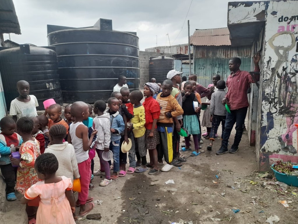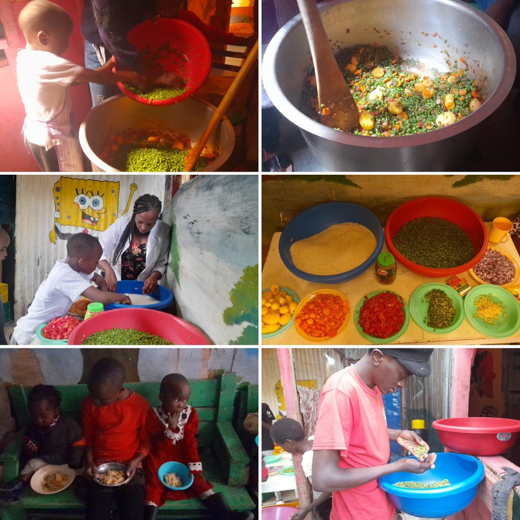 Five hundred meter away some other children gather in the MMH garden. Here they grow vegetables and learn about the importance of good food. Also other slum habitats join and buy some fresh vegetables. With the money then new seeds and purified water supply is paid.