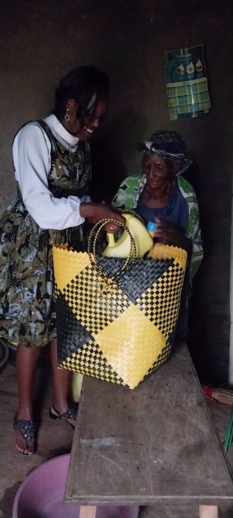 “The MMH basket of love includes maize flour, beans, sugar, salt, cooking oil, bar soaps and fresh vegetables from our MMH farm. Many of the things we distribute are produced by our farmer community. Even the soap and the basket itself …,” Vera adds.