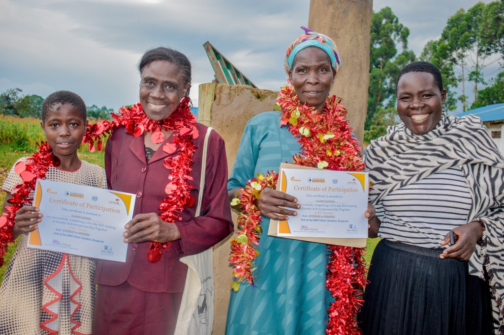 “We had a graduation ceremony for 173 people we trained in Gender and entrepreneurship. Six members of our CHW team was trained by the International Labour Organization (ILO) and certified as trainers in Gender and Entrepreneurship. This training challenges the cultural and gender biases that make people not to engage in productive activities. The training targeted farmers, members of the cooperatives, men, women, youth. We trained the people in 6 cohorts of 20 to 30 and each of group took 5 days to train. Part of the training involved Time management, how to identify opportunities and financial literacy and how to meet family needs and also business needs. This training complements very well the training on Business Coaching and Microcredit offered by the Boehringer Ingelheim employees under the making More Health Initiative.