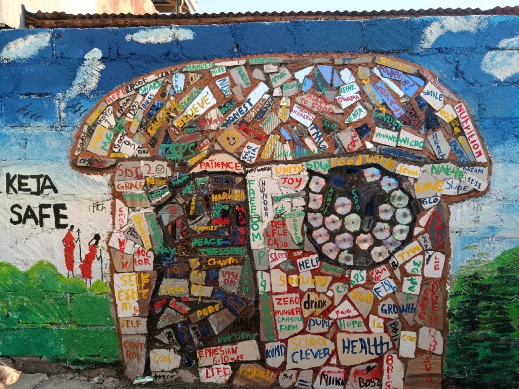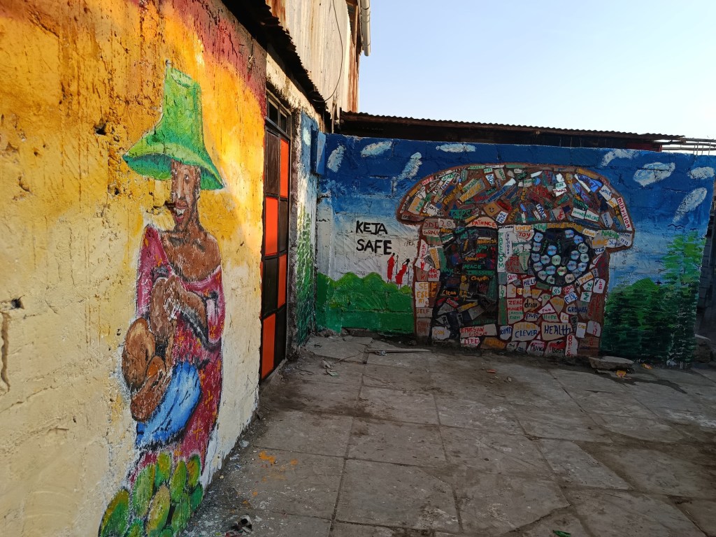 At Keja Safe, a mural of a breastfeeding mother sparks conversations on nutrition and care. Nearby, a community mosaic reflects shared dreams for safety, dignity, and belonging — proving that creativity can be a powerful driver of awareness and change.